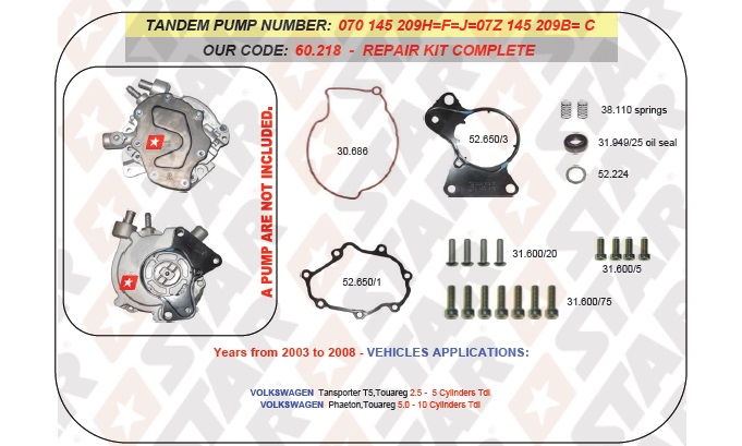 - Ремонтный комплект вакуумно топливного насоса (тандем насоса)